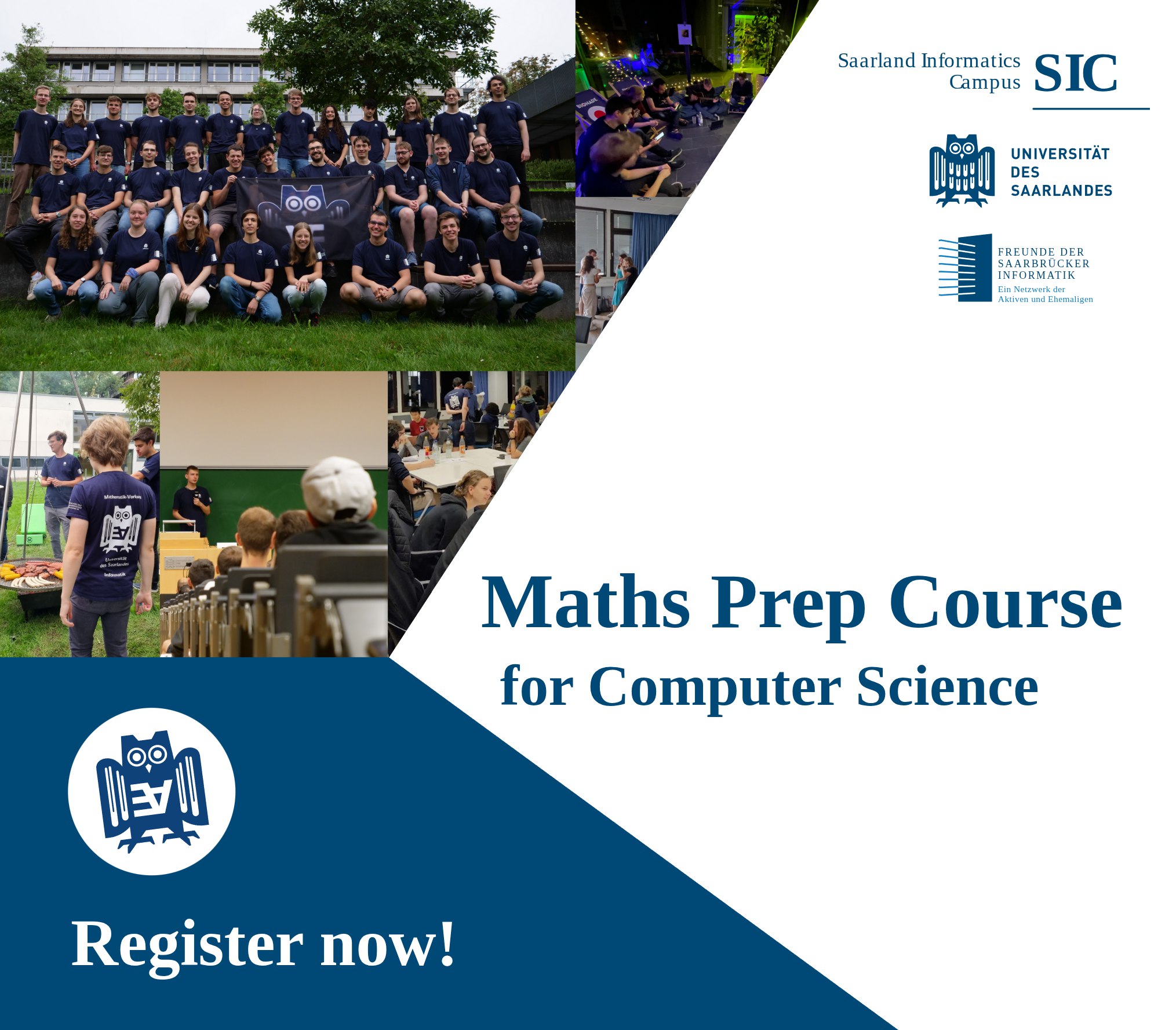 You’re starting a computer science–related degree program this coming winter semester at Saarland University (e.g., Computer Science, Bioinformatics, Cybersecurity, Data Science & AI, Business Informatics, or Computer Science for Teaching)? Then the Math Prep Course is just right for you!